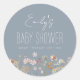 Sticker Rond Baby shower Boho Dusty Blue Fleur sauvage En Fleur