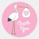 Sticker Rond Baby shower cigogne rose fille mignonne dessin