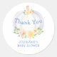 L'autocollant de Baby shower de ce garçon est décoré d'un citrouille d'aquarelle blanc, de roses jaunes et de feuillage vert. Aquarelle originale © Michele Davies.