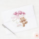 Baby shower Classic Round Sticker Merci décoré d'un adorable ours en peluche à cheval ballons dans les nuages.