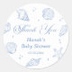 Sticker Rond Baby shower côtier des coquillages bleus Merci