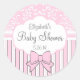 Sticker Rond Baby shower Damas rose et blanc