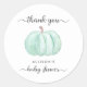 Un baby shower de remerciement mignon, gai et brillant, neutre pour le genre, avec une aquarelle de menthe pastel d'un citrouille et "merci" et "baby shower" écrit dans un script élégant. Vous pouvez facilement personnaliser le nom de la mère dans la coordination de la typographie grise douce.
