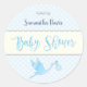 Sticker Rond Baby shower de bébé en cigogne bleue