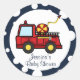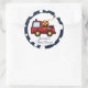 Petit camionnette rouge et autocollant design bleu et blanc pois de marine pour compléter nos invitations. Personnalisez le texte comme préféré.