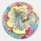 STICKER ROND BABY SHOWER DE FILLES EN STORK ROSES ROSES ROSES E
