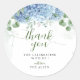 Sticker bleu hydrangea Merci Baby shower classique rond verdure. Éléments correspondants disponibles.