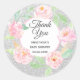 Un autocollant "merci" pour un baby shower. Ce joli autocollant a une parties scintillant argentée scintille arrière - plan, élégant texte gris foncé, et une frise rose/pêche rousse et vert aquarelle florale bordé de couronnes. Personnalisez en ajoutant votre propre texte, nom et date de baby shower. Vous pouvez même modifier la couleur du texte et le style de police à l'aide de l'option personnaliser.