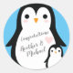 Célébrez les nouveaux parents et Baby avec ce baby shower de pingouin mignon design! L'arrière - plan bleu doux et le mignon oiseau de pingouin de dessin animé en fait un design parfait pour un bébé garçon sur le chemin, surtout pour une douche d'hiver!