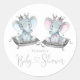 Le genre baby shower éléphant révèle des autocollants avec adorable petit garçon prince éléphant et petite fille princesse éléphant assis sur d'élégants coussins d'argent contre un arrière - plan blanc. Ce genre d'éléphant révèle des autocollants de baby shower sont facilement customisés avec votre texte. Vous pouvez également modifier la couleur de l'arrière - plan.