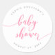 Baby shower autocollant avec les mots "Baby shower" dans un script de relaxation cursive en rose contre un arrière - plan blanc. Personnalisez-le en remplaçant le texte de l'espace réservé. Pour plus d'options comme changer la police et sa taille/couleur, développer la courbe /contrat ou l'espacement entre les lettres cliquez sur le bouton "Personnaliser". *Veuillez noter que le filigrane Zazzle qui apparaît dans l'aperçu du zoom n'apparaîtra PAS sur le produit imprimé final. © Bois de rose et agrumes