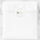 Sticker Rond Baby Shower de typographie florale « Oh Boy » bleu
