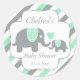 Sticker Rond Baby shower des éléphants blancs, verts et gris