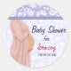 Profil d'une femme enceinte rêvant de son bébé alors qu'elle berce son estomac. L'autocollant de baby shower est doté d'un arrière - plan floral lavande souple. Customisez le nom et le texte de la date avec vos informations. Autres articles correspondants dans mon magasin.