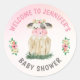 Sticker Rond Baby shower d'or rose Vache Cute personnalisé