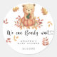"On peut attendre tôt". Célébrez avec cette soirée baby shower à thème ours en peluche ! Aquarelle mignon ours en peluche avec un citrouille d'automne dans ses pattes est assis sur le feuillage d'automne.