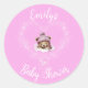 Sticker Rond Baby shower d'ours en peluche rose enneigé