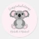 Sticker Rond Baby shower d'ours rose Koala
