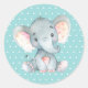 Autocollant Rond Classique Baby Shower Éléphant Aqua