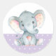 Autocollant rond classique Baby Shower éléphant fille Violet