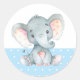 Sticker rond Baby shower Eléphant Bleu Classique