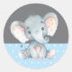 Sticker rond Baby shower Eléphant Bleu et gris classique