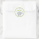 Un autocollant élégant et sucré de baby shower est doté d'un texte personnalisé qui peut être personnalisé avec le nom de la mère et un adorable veau d'éléphant nouveau-né avec des éclaboussures en forme de coeur. Le design rond comprend un motif de pois et comprend un jeu de couleurs neutre pour le genre, vert clair, gris et blanc.
