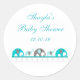 Sticker Rond Baby shower Eléphant Turquoise et Grey Favoriser