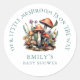 Sticker Rond Baby shower en bois des champignons Whimsical ench