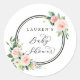 Cet autocollant de baby shower présente des fleurs d'aquarelle peintes dans un feuillage rose, blanc et vert roux avec des cadres en cercle. Pour une personnalisation plus avancée de cette conception, veuillez cliquer sur le bouton "Personnaliser".
