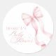 Sceller votre baby shower favorise avec élégance en utilisant ce Sticker Baby shower en ruban rose. Conçu avec un arc rose vif et un script romantique, c'est la touche finale parfaite pour les enveloppes, les sacs à gâter ou les faveurs de fête. Ce design chic et féminin ajoute un détail sucré et preppy à votre célébration.