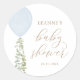 Sticker Rond Baby Shower Eucalyptus Ballon Bleu
