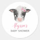 Baby shower à thème rustique de la ferme avec l'aquarelle illustration d'une petite vache avec des fleurs roses.