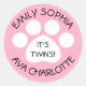 Sticker Rond Baby shower - Filles jumelles - Thème Empreinte de