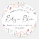 Élégant autocollant de baby shower neutre pour vos invitations, faveurs de fête et cartes de remerciement avec des aquarelles de fleurs sauvages délicats et "Baby in Bloom" écrit dans un script contemporain élégant. Personnalisez avec le nom de la date de la future maman et de la douche.