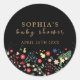 Célébrez l'arrivée de votre bébé en fleur avec cet élégant autocollant de baby shower à thème printanier moderne! Doté d'un charmant design vintage de motif fleur sauvage, il présente des fleurs sauvages colorés et lumineux.