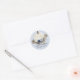 "Autocollant Rond Classique Baby Shower Fleurs de Navy Bleu Poussiéreux Citrouille Blanche." Fond en bois de grange brun foncé taché et vieilli avec des fleurs de saison navy et bleu poussiéreux avec des accents de paillettes dorées orne une élégante citrouille blanche. Cette œuvre d'art a été peinte à la main par Audrey Jeanne Roberts. Ensemble complet disponible pour coordonner. Copyright.
