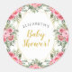Sticker Rond Baby Shower Fleurs de Pivoine Rose Gold