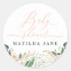 Autocollant de baby shower floral rose pâle. Belle aquarelle florale et texte de script élégant. Idéal pour les enveloppes ou les faveurs. Partie d'une collection.