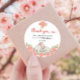 Scellez vos faveurs avec une touche de douceur ! Cet adorable autocollant, avec un éléphant d'aquarelle et des roses roses délicates, est parfait pour décorer des sacs cadeaux, des enveloppes et des faveurs de fête. Un détail charmant pour votre baby shower !