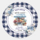Sticker Rond Baby Shower Floral Robe Gingham Bleu hors du March