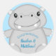Sticker Rond Baby shower Hippo bleu
