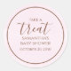 Ce design comprend un autocollant de script baby shower rose aquarelle avec typographie de script de calligraphie, un modèle minimaliste à emporter, un service de soirée étiquette autocollant créatif, pour bonbons biscuit de bar buffet, une personnaliser personnalisée whimsical chic, créatif et élégant étiquettes classe, un soin de douche en faveur étiquette rose, un ravitaillement de baby shower mignon, un callik rose balanique script de graphie