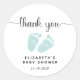 Un autocollant neutre pour votre baby shower favorise et remercie la correspondance avec "merci" dans un script élégant avec des swashes et une aquarelle verte menthe de pieds bébé. Sous vous pouvez facilement personnaliser avec votre nom et votre date de douche.