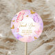 Sticker Rond Baby shower papillon violet rose or
