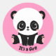 Panda rose autocollants "C'est une fille !" Idéal pour les invitations à la douche bébé. Le texte peut également être changé en un nom pour les autocollants pour enfants.