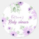 Sticker Rond Baby shower personnalisé de fleurs d'aquarelle vio