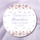 Personnalisez ce Sticker élégant en Baby shower papillon, parfait pour célébrer un petit papillon en chemin. Orné de papillons rose et lilas, cet autocollant de remerciement fantaisiste présente des fleurs roses rousses et un motif de jardin, capturant l'excitation de la future maman. Le design féminin et élégant est accentué avec une police de caractères gracieuse contre un arrière - plan blanc immaculé, parfait pour vos faveurs douche. Un message de remerciement est magnifiquement affiché faisant de cet autocollant un ajout charmant à votre fête de Baby shower papillon, déjeuner ou pique-nique.
