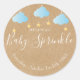 Sticker Rond Baby shower rustique kraft scintillant bleu