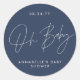 Sticker Rond Baby shower script moderne marine bleu élégant